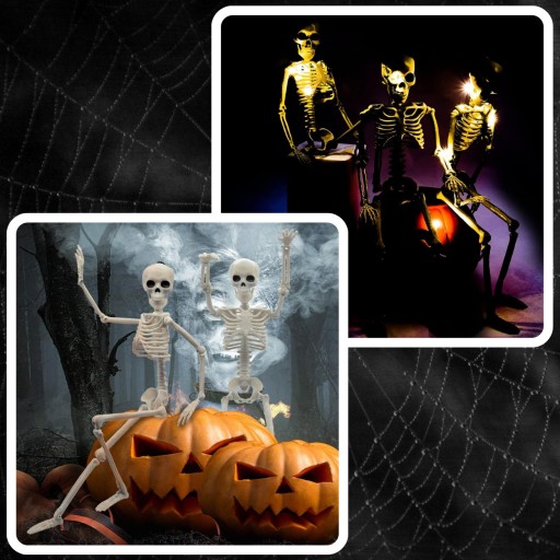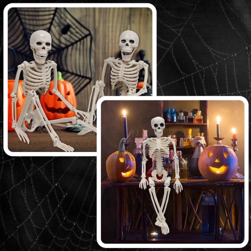 ✔️Ruchome Kończyny✔️Szkielet ma ruchome ręce i nogi, co pozwala na tworzenie różnych pozycji i efektownych aranżacji. Idealne do tworzenia dynamicznych i interesujących dekoracji.