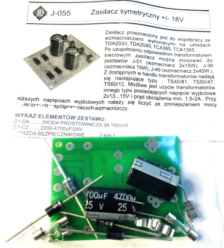 Zasilacz symetryczny +/-18V – zestaw do montażu diy kit JABel
