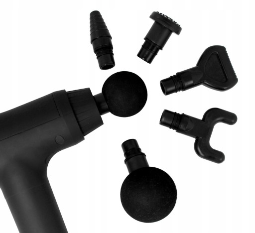- Okrągła: Za jej pomocą można wykonać masaż wszystkich części ciała, o umiarkowanej sile nacisku i intensywności. Nacisk rozkłada się po powierzchni kuli, przez co końcówka ta idealnie nadaje się do masażu dużych partii mięśni takich jak: uda, kark, ramiona. Jest ona również odpowiednia do masażu rozluźniającego i rozgrzewającego zbite i spięte mięśnie po treningach oraz przed intensywnymi treningami. Głowica ta symuluje podstawowe techniki masażu takie jak: głaskanie, rozcieranie, wyciskanie, ugniatanie, oklepywanie, wibracja i wstrząsanie. Pomocna w walce z cellulitem