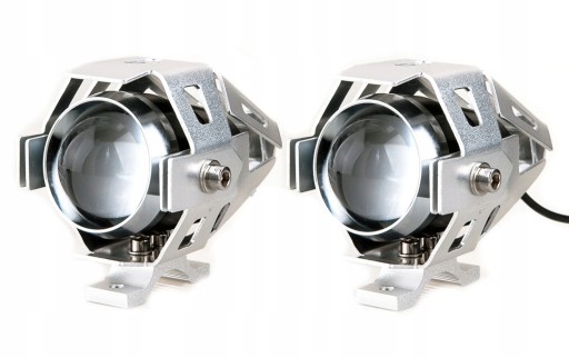 Zestaw dwóch małych halogenów motocyklowych cree led TYP LGLE 10-XLS o mocy 10Wat każdy, moc świecenia ok.1000 lm temperatura barwy 5500k (zimna biała) wodoodporny kolor obudowy czarny, kolor ringu biały .