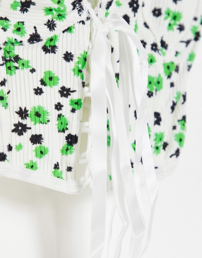 DESIGN Зеленый корсет в рубчик с цветочным принтом XL
