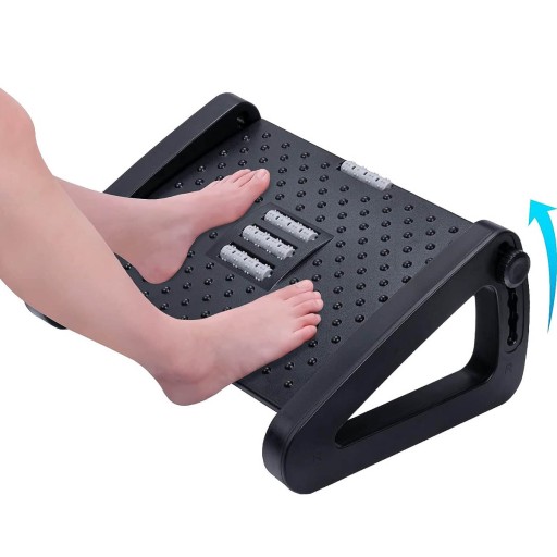 - Ulepszony podnóżek biurka może spełnić Twoje potrzeby w zakresie masażu. Dzięki teksturowanej powierzchni i dużej, swobodnie pływającej platformie pokrytej okrągłymi wypustkami i rolkami masującymi, możesz zrelaksować się w każdej chwili.