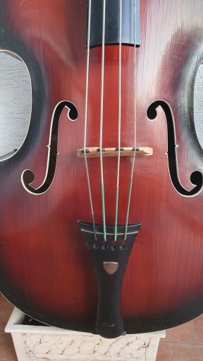 Kontrabas jest prawdopodobnie produkcji czeskiej. Został zakupiony od lutnika 30 lat temu. I od tamtego czasu nie był używany.