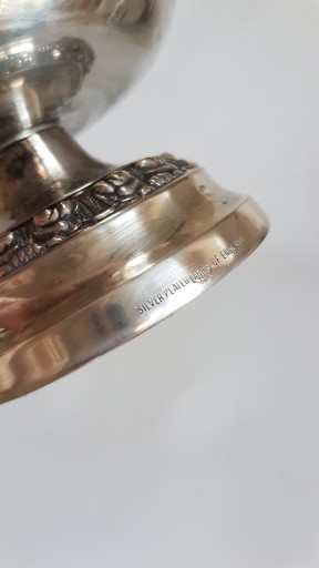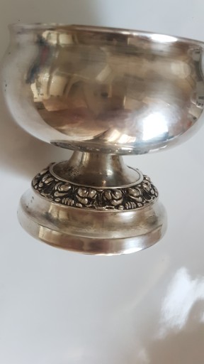 Stary angielski plater - wazon , patera , ikebana , pięknie wykończona na podstawie .Może mieć różne zastosowanie , sygnowsna znakiem wytwórni .Na innej mojej aukcji oferuję szklany wkład z zielonego szkła , który idealnie pasuje do tego przedmiotu Stan bardzo dobry . Wym .wys 7.5 cm śred na górze 6.8 cm