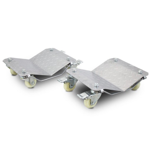 2 praktyczne pomoce do manewrowania. Dzięki temu systemowi manewrowania możesz błyskawicznie przemieścić swój samochód i ustawić go w dowolnej pozycji w najmniejszej przestrzeni. Dzięki solidnej stalowej konstrukcji możliwe jest obciążenie do 680 kg na jeden element manewrowy. Dwa z 4 kółek posiadają także hamulce, co zapobiega przypadkowemu stoczeniu się ładunku. Idealny dla salonów samochodowych, do manewrowania samochodami na najmniejszej przestrzeni, na wystawach, targach, a także w warsztatach i usługach holowniczych.