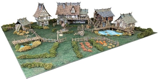 Zestaw Fantasy Village od BattleSystems zawiera gotowe kartonowe elementy do złożenia dzięki którym, odtworzysz na Swoim stole sielską wioskę. Może posłużyć zarówno do sesji RPG, jak i jako elementy zabudowy w grach bitewnych w skali 28 do 35mm.