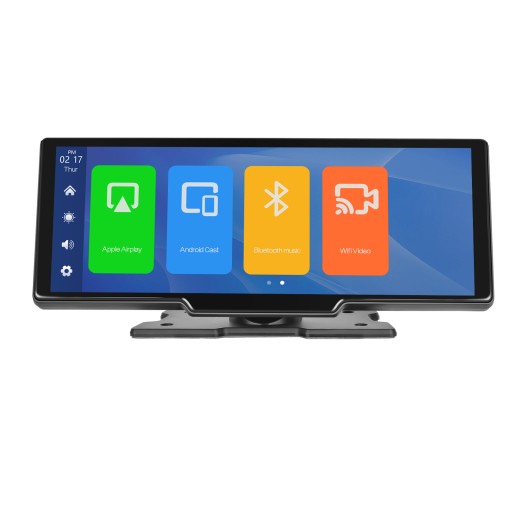 W zestawie dostajesz 9.3 calowy ekran do samochodu, który możesz postawić na kokpicie (przykleić za pomocą taśmy 3M lub nawet przykręcić). Ekran IPS LCD jest dotykowy z wysoką rozdzielczością (1600x600 px). Monitor ma też dobre parametry jeśli idzie o kąty widzenia (w poziomie to ok. 150 stopni), więc ten sprzęt może znaleźć swoje miejsce w większych autach typu busy, vany czy autokary. Szczególnie, że sam monitor możesz przenosić z auta do auta. Monitor ma opcję pochylenia ekranu.