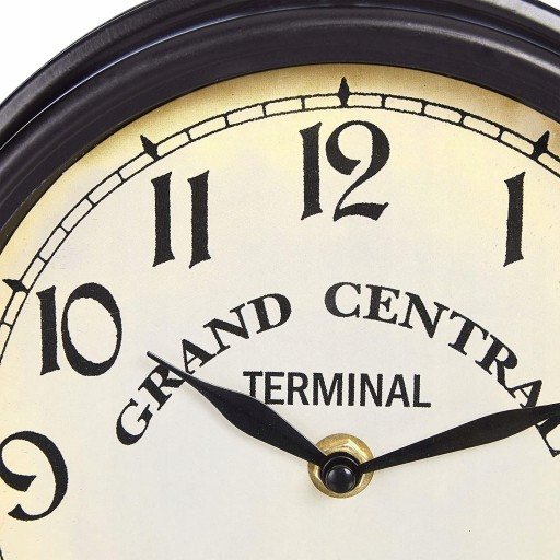 Nastpny chwyt ten zegar ścienny w stylu retro zapewnia nostalgiczną atmosfer dworcowego w mieszkaniu Vintage Romantyczny design zegara dekoracyjnego przypomina wcześniejsze zegary dworcowe w Nowym Jorku Londynie i wielu innych miejscach. Dwustronny Dziki cyferblatowi po obu stronach zawsze masz godzin w zasigu wzroku wyświetlacz analogowy Monta zegar kuchenny mona łatwo zawiesi na ścianie dekoracja w pomieszczeniu Praktyczny czarny zegarek w stylu vintage zasilany bateriami AA nie są zawarte w zestawie wys. x szer. x gł. ok. 35 x 35 x 10 cm