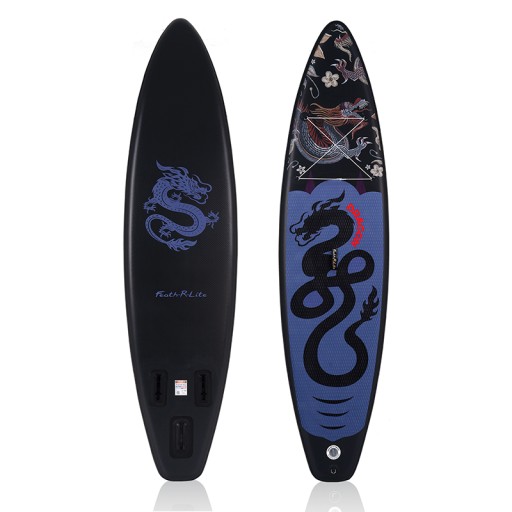 Deska SUP słynie ze swojej solidnej budowy, dzięki wzmacnianej szkła węglowego kompozytowej obudowie z grubą warstwą PVC. Ta konfiguracja zapewnia niezawodność i odporność na uszkodzenia, idealnie sprawdzając się na różnych powierzchniach wody. Dodatkowo, powłoka PVC chroni przed promieniami UV, utrzymując długotrwałe piękno kolorów i integralność materiału. ☀️💪