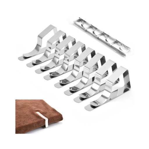 [Materiał wysokiej jakości] Te klipsy do obrusów są wykonane ze stali nierdzewnej, trwałe i odporne na rdzę, mocno trzymają obrusy i leżą płasko.