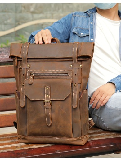 1 шт. Мужской винтажный рюкзак из воловьей кожи, дорожная сумка
