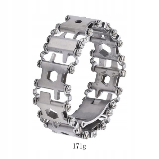 Do 31 narzędzi w jednej bransoletce, różne klucze, wkrętaki płaskie i krzyżakowe, łamacz szkła z węglika spiekanego, wytrych do kart SIM, hak do cięcia, otwieracz do butelek i tak dalej Jest idealny dla osób, które potrzebują wielu narzędzi, ale nie chcą ich nosić