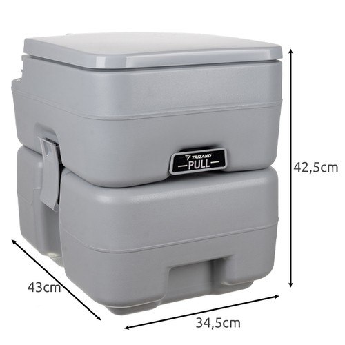 - SPECYFIKACJA: kolor: szary; materiał: HDPE, ABS, PP, guma; pojemność zbiornika na nieczystości: 20l; pojemność zbiornika na wodę: 12l; udźwig: 150kg; wymiary: 42,5 x 34,5 x 43cm; wewnętrzna średnica siedziska: 25,5 x 22cm; waga: 4,3kg; waga w opakowaniu: 5,1kg