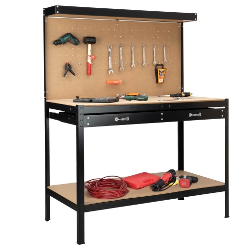 Dzięki przemyślanej konstrukcji i dodatkom, takim jak perforowana tablica, wszystkie narzędzia są zawsze na swoim miejscu, co ułatwia pracę i poprawia efektywność.