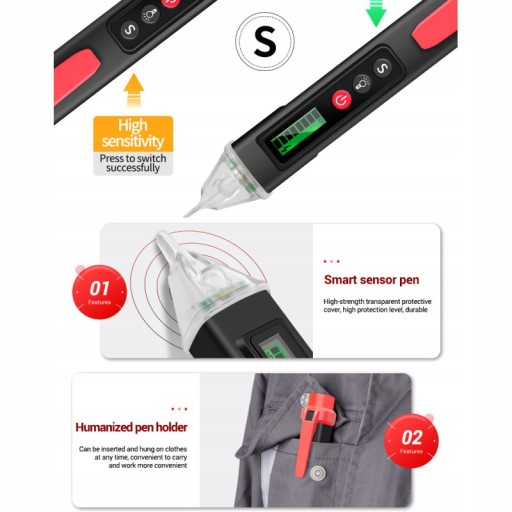 1 x bezdotykowy detektor napięcia AC (baterie nie są dołączone).