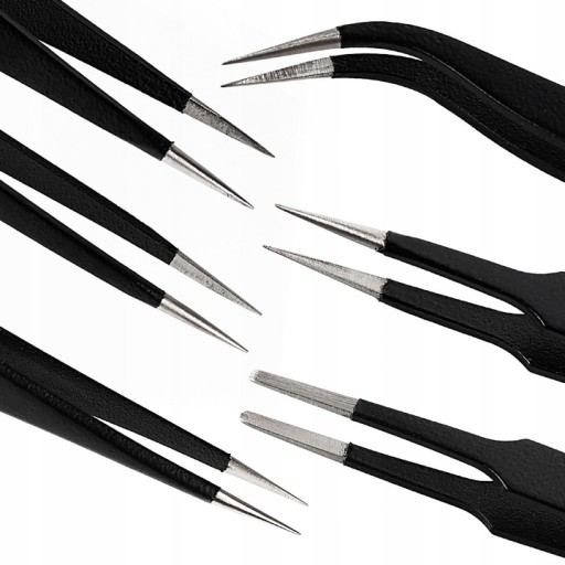 ✅ Zestaw 6 precyzyjnych pęset dla elektroniki.