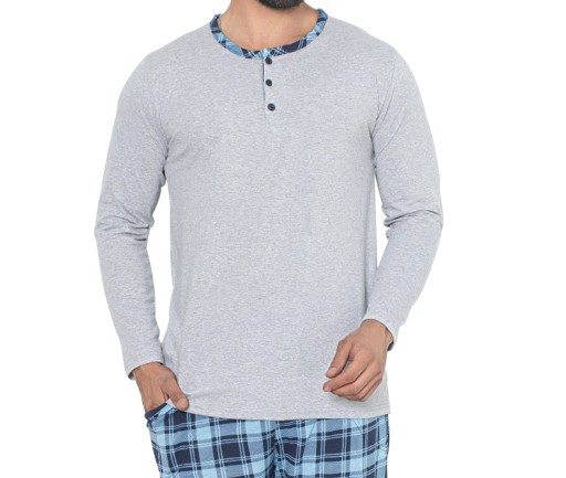 Bawełniana piżama męska o długim rękawie to wygodny i komfortowy strój nocny idealny na letnie noce.Wygodna bawełniana tkanina zapewnia przyjemne uczucie na skórze i świetną wentylację, dzięki czemu zapewnia komfortowy sen nawet w najgorętsze dni.