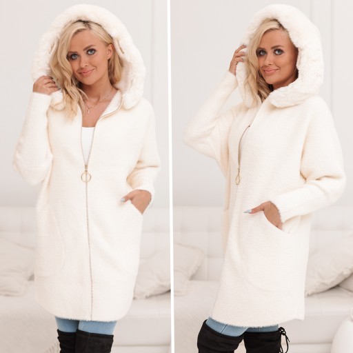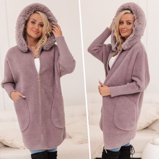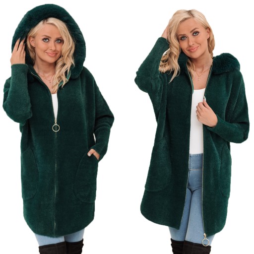 Puszysty i wysokogatunkowy płaszcz ALPAKA, bardzo delikatny i miękki w dotyku. Płaszczyk z kapturem o oversizowym kroju idealnie dopasowuje się do sylwetki.