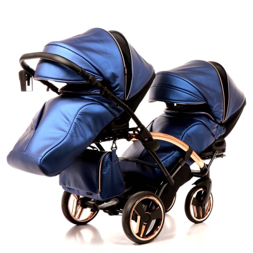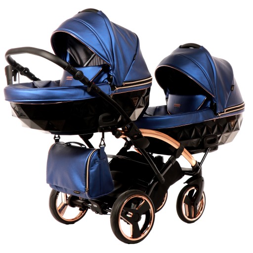 JUNAMA Fluo Duo Slim wózek bliźniaczy 3w1 Niebieski 01 V3 fotelik COSMO
