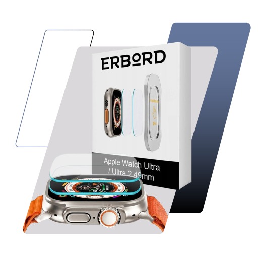 2x Szkło Hartowane ERBORD do Apple Watch Ultra 1/2/3 49mm z ramką do montażu