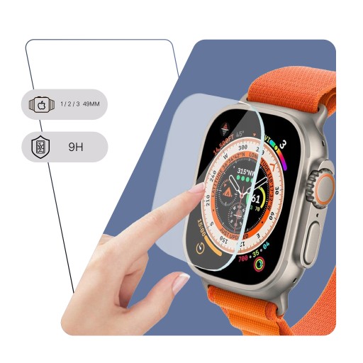 2x SZKŁO HARTOWANE DO APPLE WATCH ULTRA 1 / 2 / 3 49MM Z RAMKĄ DO MONTAŻU