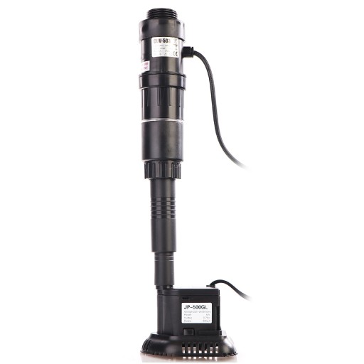 W sterylizatorach CUV (503, 505, 510) znajdziesz teleskopową rurkę pasującą na wylot pompy. Za jej pomocą możesz zasilić lamę i stosować ją wewnątrz zbiornika wodnego.