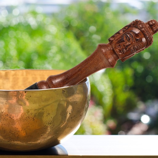 Деревянная звуковая чаша и палочка для тибетского пения.