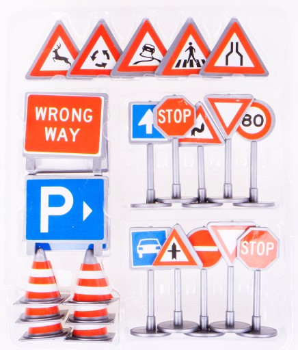 Nie ma się co łudzić! Dzieci powinny znać przepisy ruchu drogowego - te najprostsze, ma się rozumieć! A jak je ich nauczyć? Przez zabawę! Przedstawiamy zestaw 25 znaków drogowych. Jeśli szukasz pomysłu na fajny, rozwijający prezent, to właśnie go znalazłeś. Bawiąc się tymi znakami, maluch może tworzyć własne drogi (np. z klocków) i aranżować różne sytuacje drogowe.