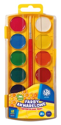- Farby akwarelowe Miodowe Astra 12 kol - fi 25mm z eurozawieszką