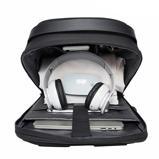 Plecak wyposażony jest w system antykradzieżowy. Głowna komora, w której przenoszony będzie laptop, może zostać zabezpieczona przed otwarciem, za pomocą kłódki wyposażonej w trzycyfrowy cyfr.
