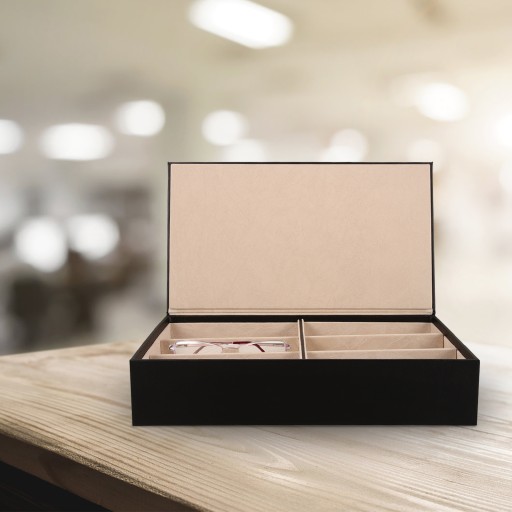 ✅To pudełko na okulary jest niezbędne dla każdego, kto chce utrzymać swoje okulary w porządku i chronić je. Dzięki licznym przegródkom i przejrzystemu okienku