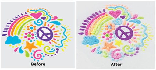 - Twoje dzieło uwypukli się w przeciągu 1 minuty. Czas zależy od ilości nałożonego tuszu. Duża ilość tuszu będzie potrzebowała większej ilości ciepła (dłuższego nagrzewania).