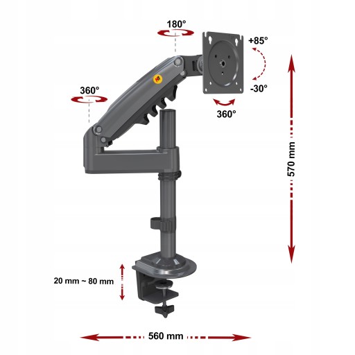 - uchwyt posiada sprężynę gazową umożliwiającą płynną regulację wysokości monitora
