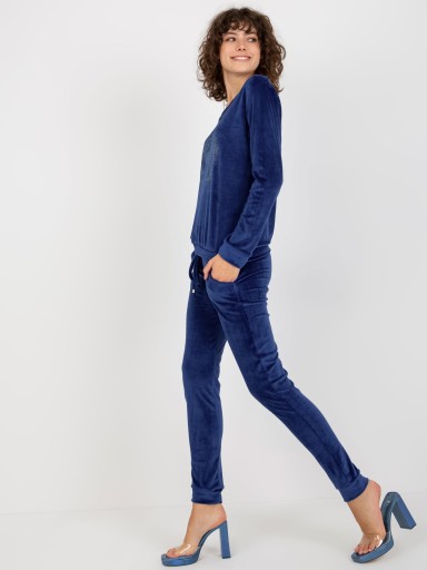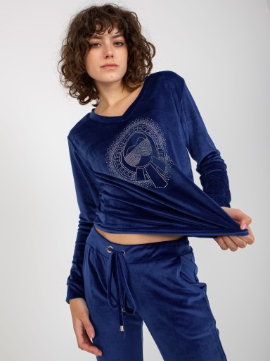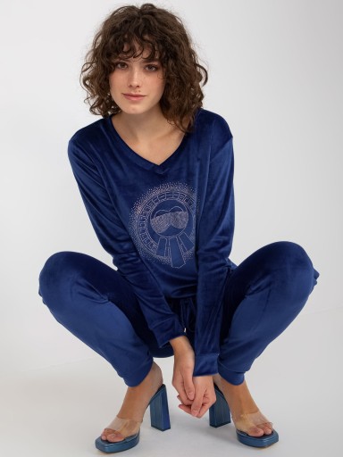 WELUROWY KOMPLET DAMSKI Z DEKOLTEM W SEREK I MODNĄ APLIKACJĄ