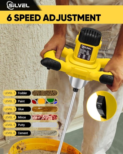 СМЕСИТЕЛЬ ДЛЯ КЛЕЙНОГО РАСТВОРА ДЛЯ БЕТОННОЙ ШТУКАТУРКИ + 2X СМЕСИТЕЛЬ, РЕГУЛИРУЕМАЯ СКОРОСТЬ 3000 Вт