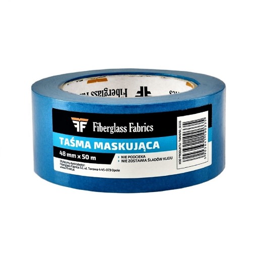 - Jednostronnie klejąca taśma papierowa, maskująca w kolorze niebieskim, przydatna przy pracach malarskich i tynkarskich wewnątrz oraz na zewnątrz budynków.