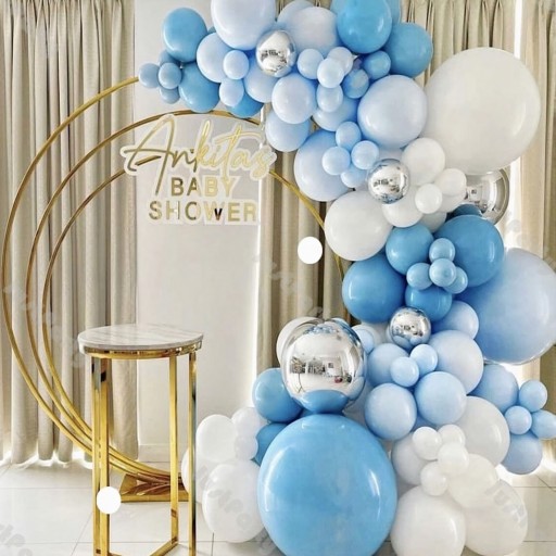 Elegancki wygląd, kolory srebra, błękitu i bieli oraz różne wymiary balonów, sprawią że zestaw stworzy magiczny i niepowtarzalny wygląd. Cała kompozycja będzie też perfekcyjnym tłem ścianki zdjęciowej.