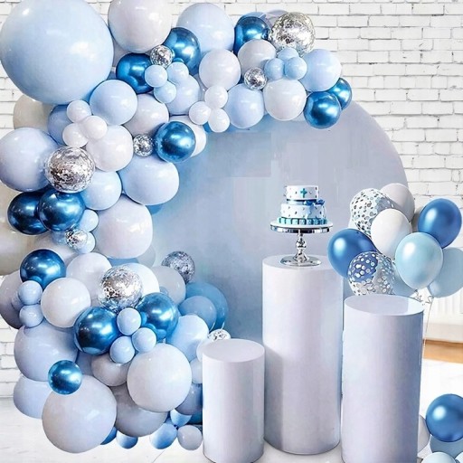 ZESTAW BALONÓW GIRLANDA BALONOWA NIEBIESKA BIAŁA SREBRNA CHRZEST URODZINY 126 szt.
