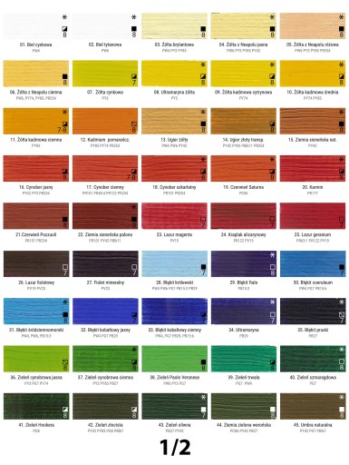 Oils for Art polskiej firmy Renesans to niezwykłe olejne farby artystyczne. Wytwarzane za pomocą wyjątkowego procesu produkcyjnego, gwarantującego spełnienie najwyższych wymagań. Zawierają najlepszej jakości pigmenty o wysokiej koncentracji. Rezultatem czego są farby o największej czystości i głębi, które łatwo mieszają się ze sobą oraz z innymi farbami olejnymi Renesans.