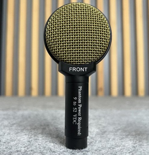 Pojemnościowy mikrofon instrumentalny o kierunkowej charakterystyce kardioidalnej.