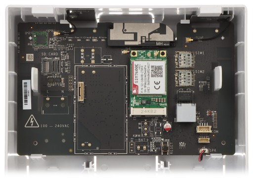 Centrala posiada wbudowany zróżnicowane interfejsy komunikacyjne (WiFi, LAN, 3G/4G), pozwalające na połączenie jej z chmurą oraz z centrum alarmowym.