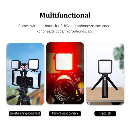 【Szeroka kompatybilność】 Dzięki trzem mocowaniom zimnej stopki ta lampa jest kompatybilna z lustrzankami cyfrowymi, aparatami bezlusterkowymi, kamerami, smartfonami, statywami, mikrofonami i nie tylko.