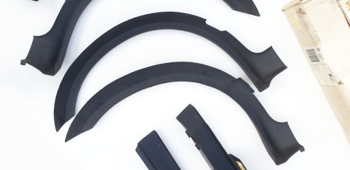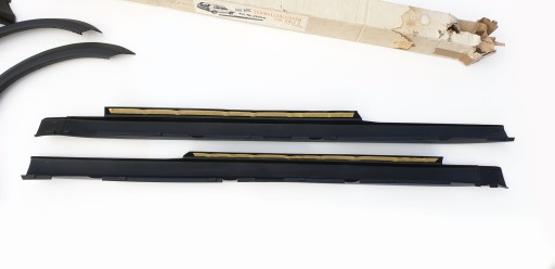 Zestaw nowy, nigdy nie montowany. W zestawie pudełka choć jak widać nie są w idealnym stanie - zestaw przeleżał u mnie kilka dobrych lat w garażu i pudełka niestety przez ten czas złapały trochę wilgoci. Jest komplet dokumentów na oba elementy, są spinki do progów, nie było tylko żadnego "osprzętu" w pudełku z sierpami - nie wiem czy jakieś spinki/śrubki też powinny być. Akcesoria niemalże niedostępne na rynku wtórnym, nie wspominając nic o znalezieniu nowego egzemplarza.