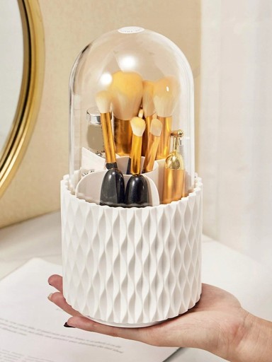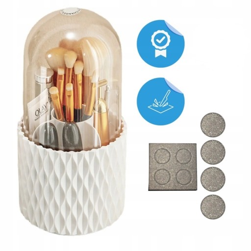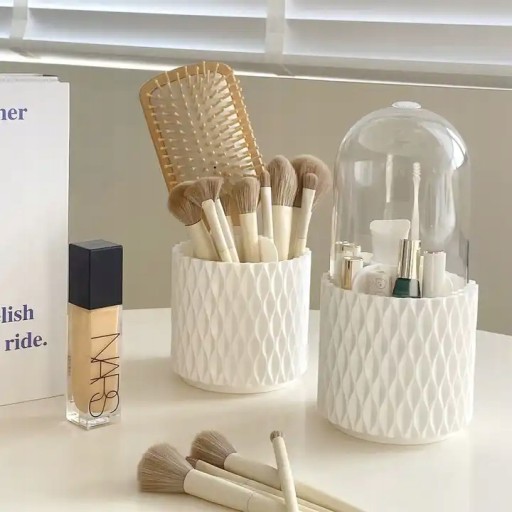 Stylowy i funkcjonalny obrotowy organizer na kosmetyki z pokrywą, idealny do przechowywania Twoich kosmetyków i akcesoriów do makijażu.