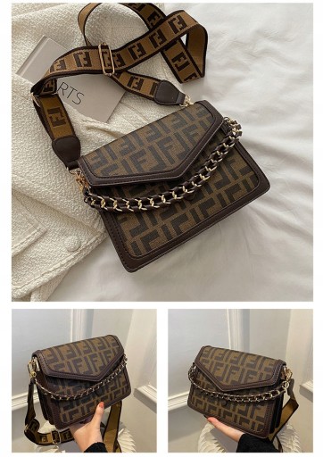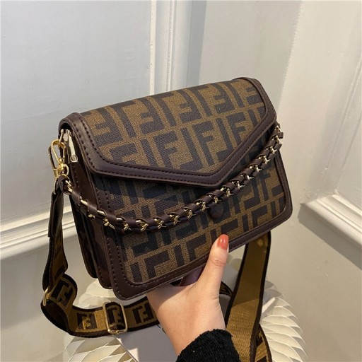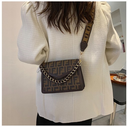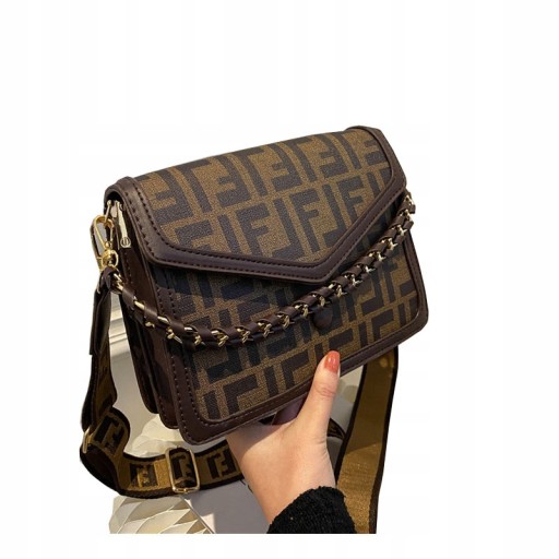 1. Modna dekoracja Na torebce znajdują się wykwintne wzory liter. Istnieje również ozdoba z plecionego łańcuszka ze skóry i metalu.
