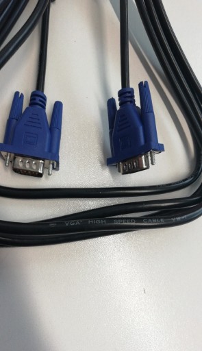 - Wysokiej jakości kabel VGA łączy komputer wyposażony w VGA (Video Graphic Array) z monitorem lub projektorem z 15-pinowym portem VGA.