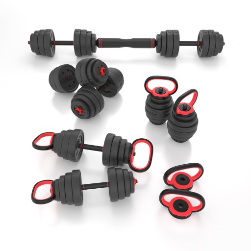 Zestaw ciężarów 6w1 HMS SGX130 (sztanga, sztangielki i kettlebell) w walizce 30kg