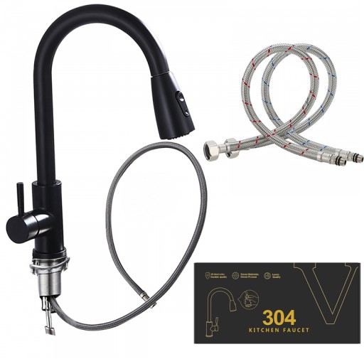 【Wysuwany nowoczesny kran】 Wyciągnij kran zlewu kuchennego z szerokim, efektywnym na profesjonalnym nylonowym wężem, dzięki czemu ludzie mogą korzystać z kranu kuchennego.