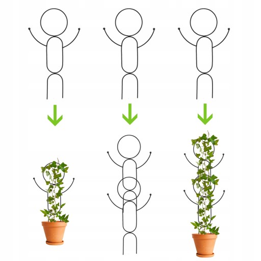 3. Możliwość układania w stos DIY Design: krata wewnętrzna ma szczęśliwy kształt humanoidalny. Możesz ustawić dwa lub więcej za pomocą opasek kablowych, aby spełnić swoje potrzeby dotyczące różnych wysokości kratek roślinnych.
