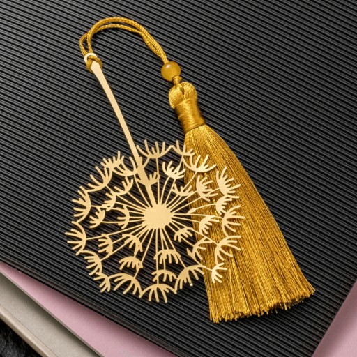 Bardzo elegancka i stylowa zakładka w klasycznym kolorze złota i pełnym symboliki kształcie dmuchawca, który symbolizuje radość, wolność, a także nieograniczone możliwości. Może on również stanowić symbol przemijania, ulotności i śmiertelności.